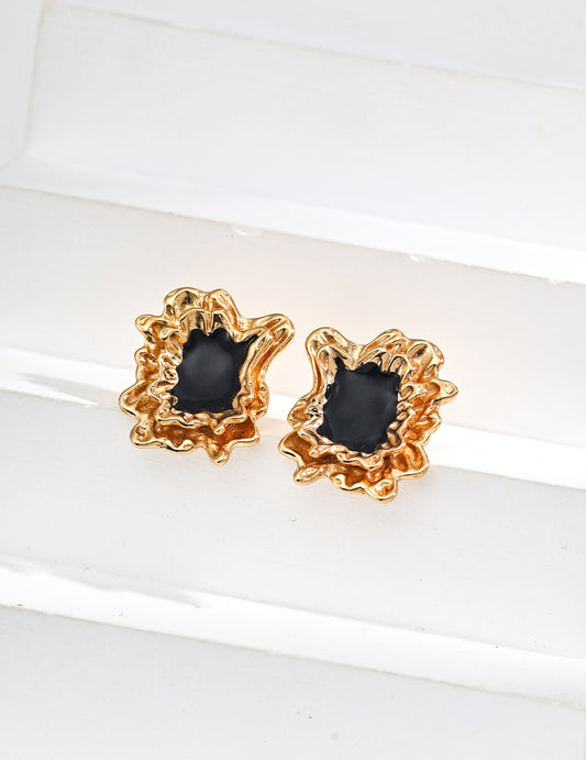 Irregular Gold Splash Frame Enamel Stud Earrings