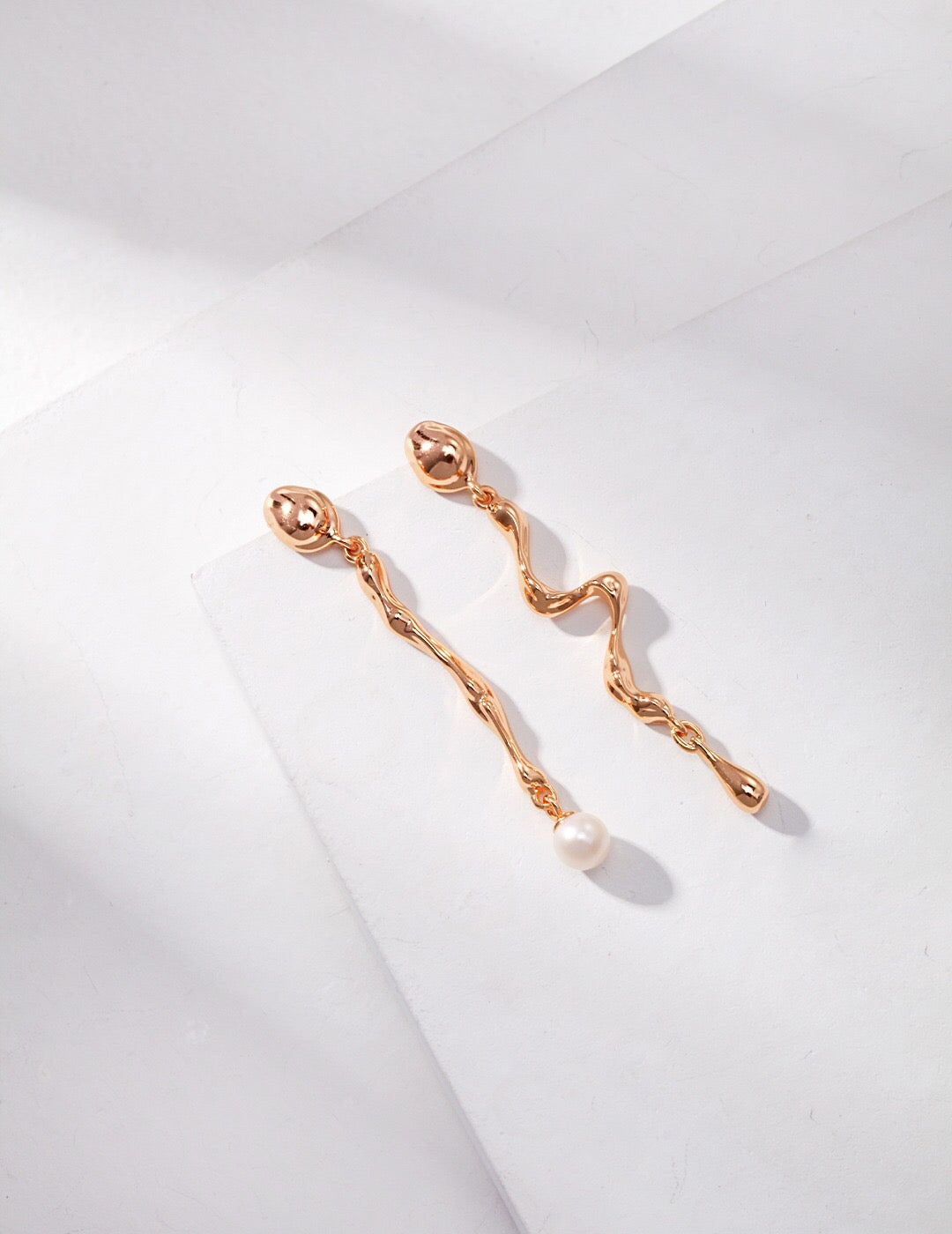 Long Wavy Drop Pearl Asymmetrical Earrings