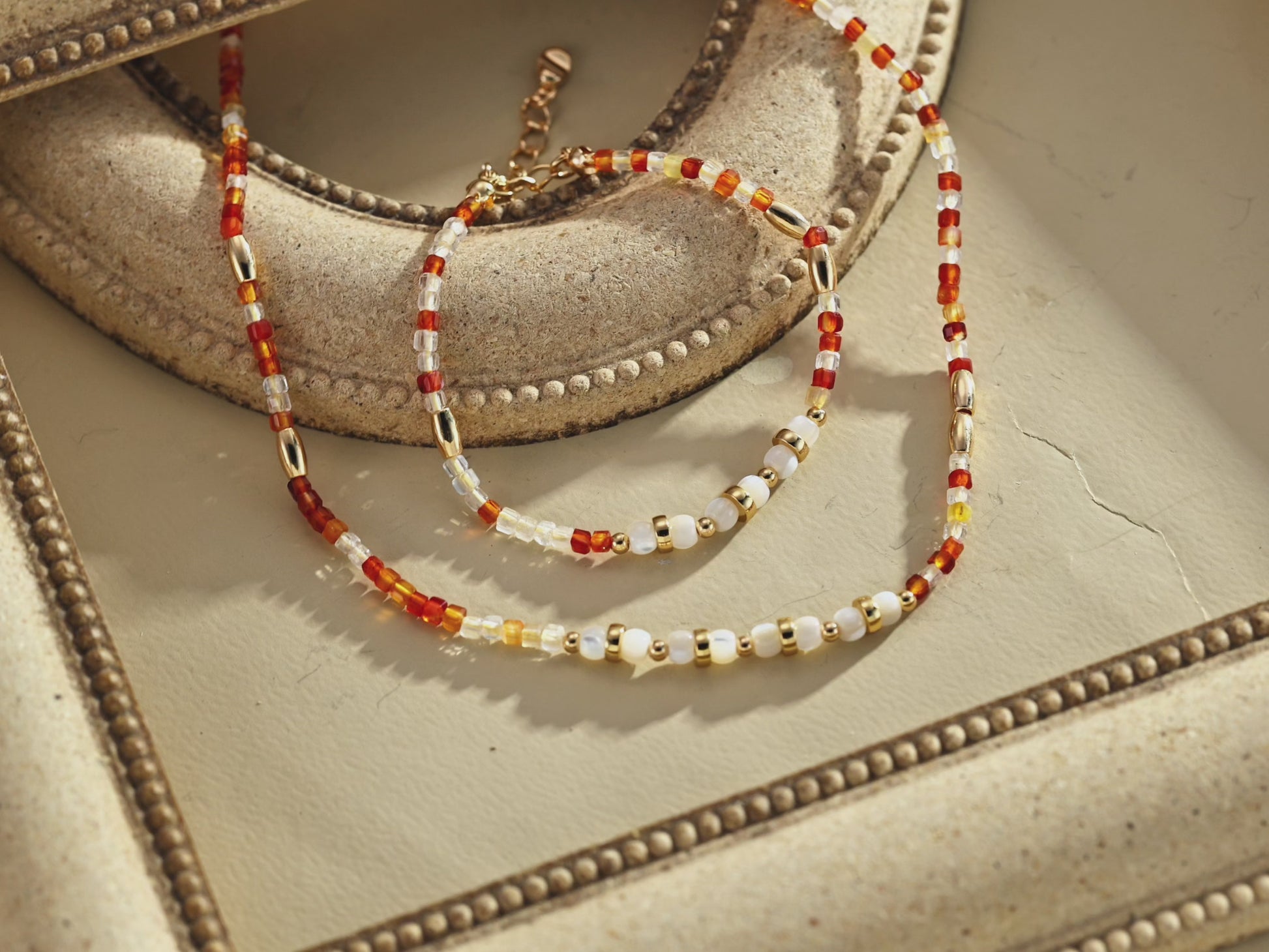 - Materials: Red Agate / Mother-of-Pearl / Gold Vermeil (18ct gold plated on sterling silver)